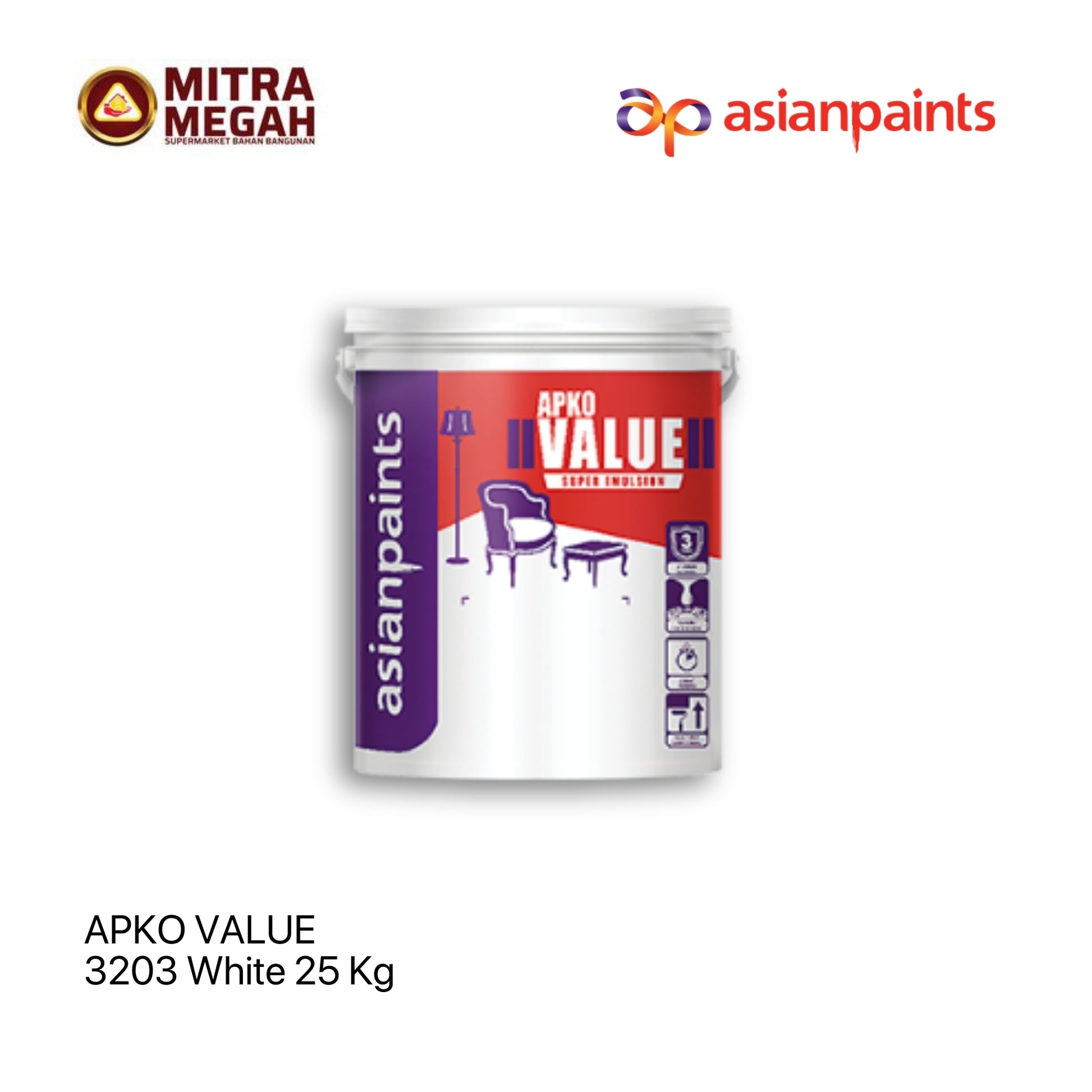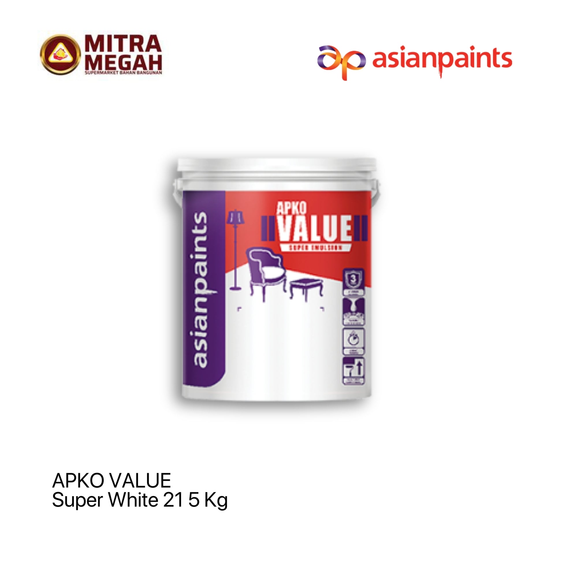 Daya Sebar Lebih Value Super Emulsion menawarkan daya sebar cat antara 80-100 m2 per pail dengan daya sebar tertinggi dikelasnya. -Cepat Kering Cat interior rumah Value Super Emulsion menyediakan kering sentuh dalam waktu 15 menit, sehingga Anda dapat menyelesaikan proses pengecatan pada hari yang sama dan menghemat waktu. -3 Lapis Sempurna Value Super Emulsion memberikan 3 lapis sempurna pada tembok Anda, sedangkan produk lainnya membutuhkan 4-5 lapisan.